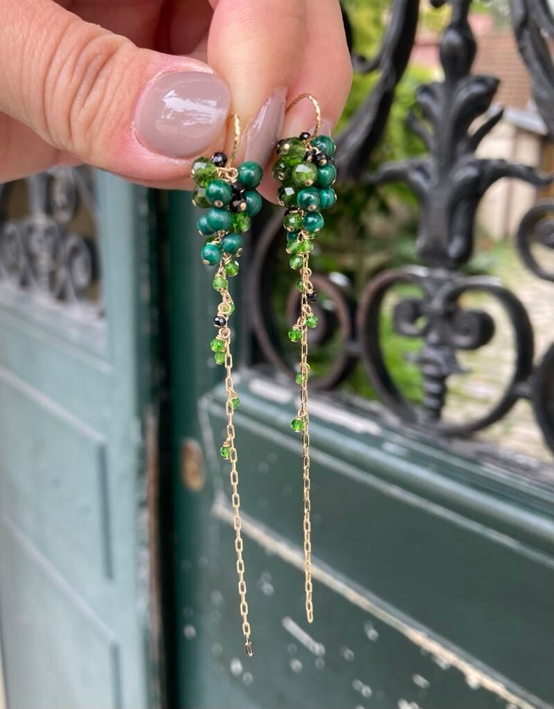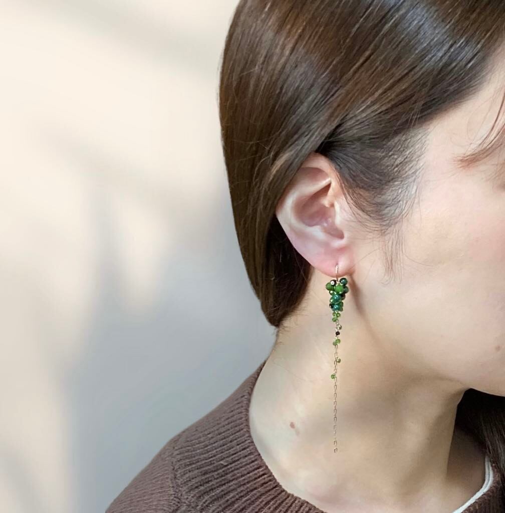 K18(ピアス金具),K10(チェーン),K14GF(その他金属)、ブラックスピネル、クロムダイオプサイト、マラカイト