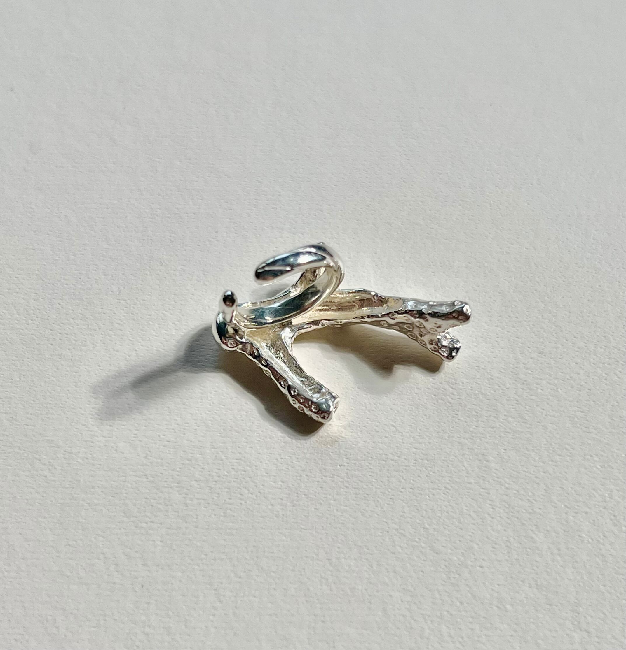 沖縄の浜辺で見つけた珊瑚から型を取り製作したイヤーカフ。