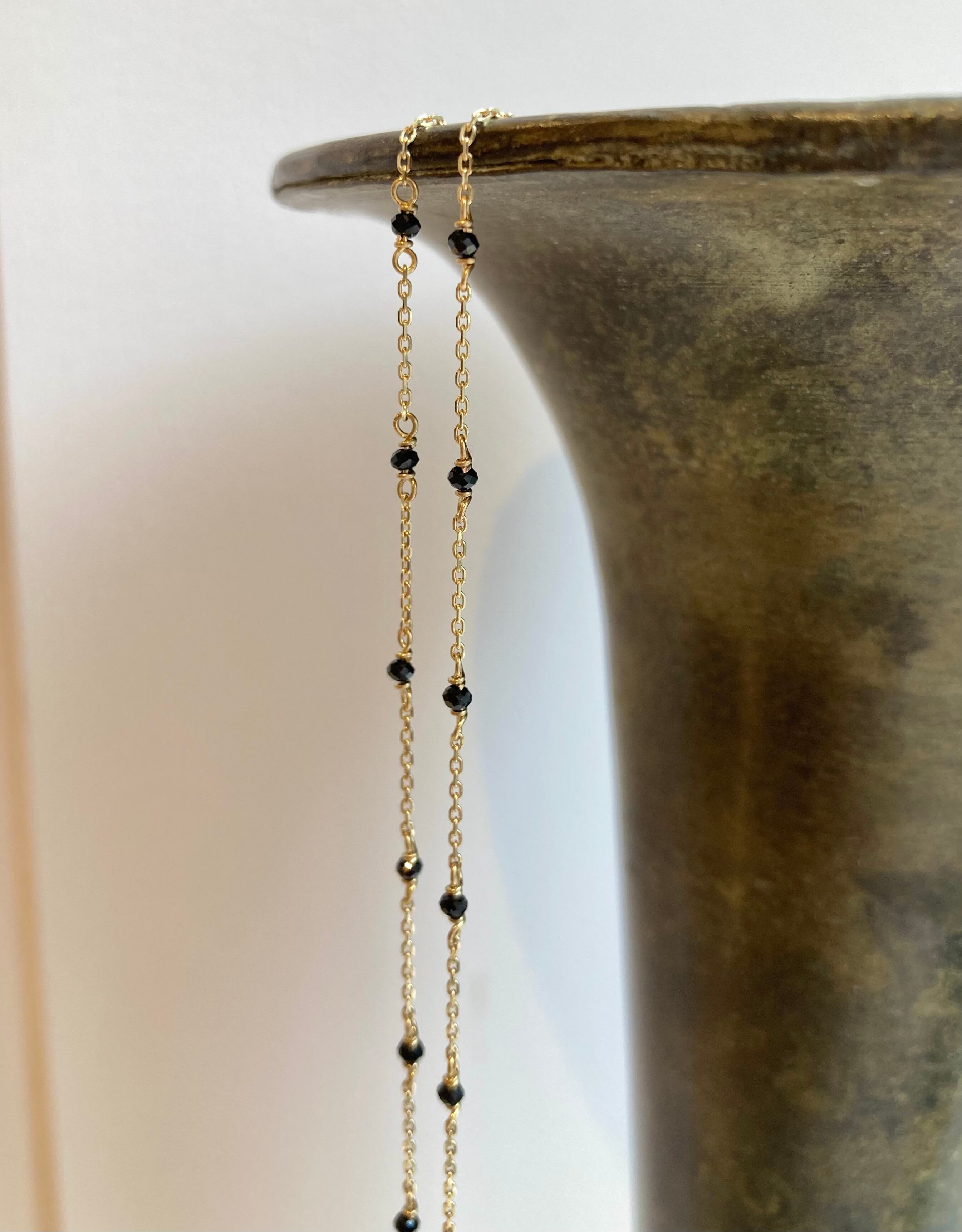 ブラックスピネルは小粒のキラキラブラックのストーンがクールさと華やかさの両方を演出してくれます。